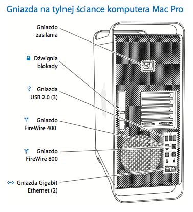 8) Gniazda urządzeń zewnętrznych - można do nich podłączyć np. monitor, głośniki, klawiaturę, internet itd.
